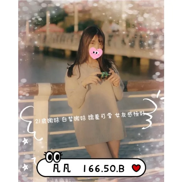 顏值上等,清新可愛款,路上也會多看兩眼的那種妹妹,看起來20出頭歲。 沒刺青,皮膚好滑,個性很活潑愛笑,互動起来很舒服,很有女友fu。 天然小奶手感很好,妹妹很敏感,身材好想令你佔有,可親、可舌、可摳、可69。 體育有暗配,也可加值音樂,合理價。 輕功、按摩沒有,加值會覺得你無得後悔,叫聲好聽,很真實,好有感覺。 強推回沖。