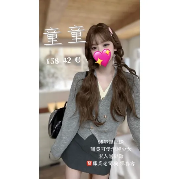 顏值:8.5/10,鄰家可愛型,年紀輕很有活力的感覺 身材:8.5/10,屬於小隻馬類型,真胸大B小C有彈性,皮膚滑嫩偏白 服務:9.5/10 妹妹是左撇子,用左手手工搭配舔奶,可親,雖然只有上空不過視覺效果還是很可愛,過程服務態度良好,推薦給喜歡蘿莉型妹妹的客人
