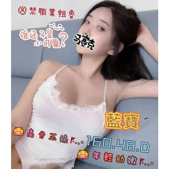 藍藍 可愛型身材中上,很健談,加值價錢合理,服務尺度不錯,沒輕功但有三光,會想回沖喔。