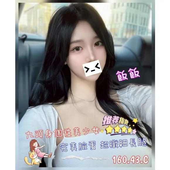 飯飯看起來就是很大方的類型~也是因為她刺青很帥所以我第一眼就挑中她,服務的時候確實也是很健談也很願意配合我的要求!跟她有點壞壞的外表成反比反而覺得她有點小可愛~但也有聊到其他部分確實是很符合我看她的第一印象的事,就是價格有點小高了一點,但有機會應該還是會回沖